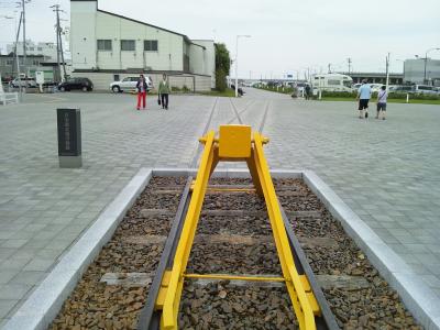 2012年に今の建物・駅舎になったようで、以前は少しだけ北側まで線路が伸びていました。さらに昔は、防波堤ドームまで線路が伸びていたようで、そのことを示す線路跡と車止めが当時の位置にモニュメントとして残されています。- 旅行時期
