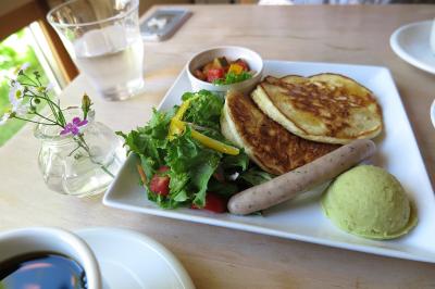 ちょっと小腹が空いたので、パンケーキのセットにしましたが、付け合わせとともにあっさり目で美味しかったです。コーヒーも。