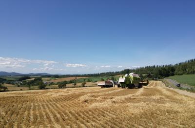 ラベンダーだけでなく、虹のようにきれいな彩の畑は花だけでなく麦の穂でも彩られていて、感動しました。