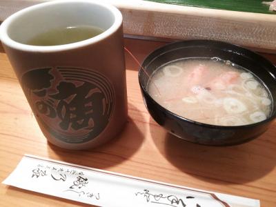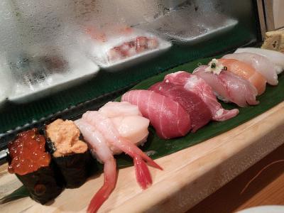 満席ではないけど、そこそこお客さんが座っていたカウンターだけの小さいお店で、エビの入ったお味噌汁と穴子、玉子にはじまり、鯵にサーモン、赤身に中トロ、大トロ、白身にイカ、甘エビにホタテ、イクラにウニと12貫が続々と並べられました。