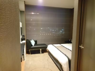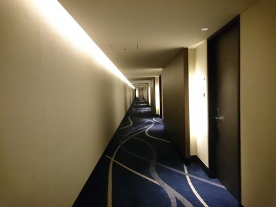 30F建てのビルで、30Fがロビーとレストラン。部屋はその下の2フロアなので、1Fから30Fに上がってチェックイン、別のホテル内エレベーターで下りていくことになります。ちょっと不思議。しかも1フロアの面積が広いようで、廊下はかなり長いです。