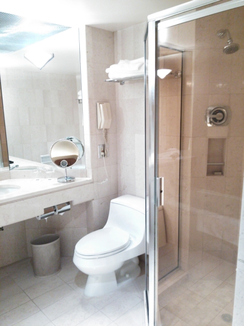 バスルームはバスタブがなくシャワーだけですが、バスタブを撤去してシャワールームにしたような設計で、きれいで余裕の広さでした。