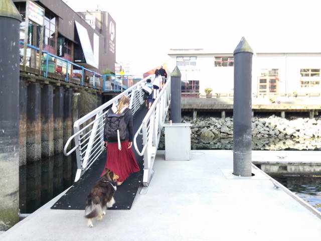 橋は高いところを通ってダウンタウンと反対側に出るので、バスで行ったほうが便利、イエールタウンから小さな船のアクアバスに乗ると、眺めが良くて観光気分で着けると思います。