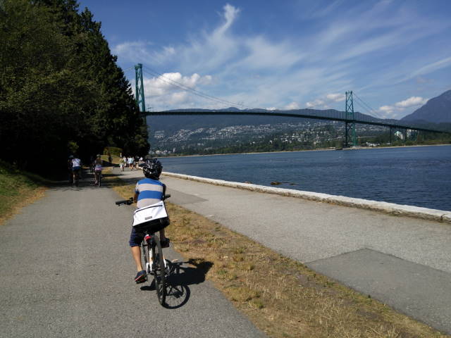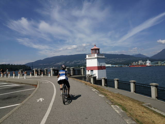 サイクリングロードは左回りの一方通行なので、一周するつもりでなければ、灯台を過ぎたらライオンズゲートブリッジまで行かずに、水族館を目指して海沿いから離れて帰ってきましょう。ライオンズゲートブリッジまで行ってしまうと一周するしかなく、ショートカットしようとすると苦しい道が待っています...- 旅行時期