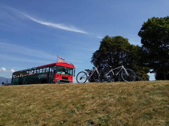 ウオーターフロントからバスで行ってもよいけど、公園手前に多くあるレンタサイクルを借りてまわりたいところ。