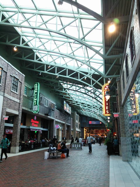 アメリカにあるような隣の店に移動するにもクルマを使うほどの巨大さではなく、屋内で繋がっているので、天候に関係なく楽しめます。