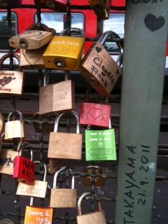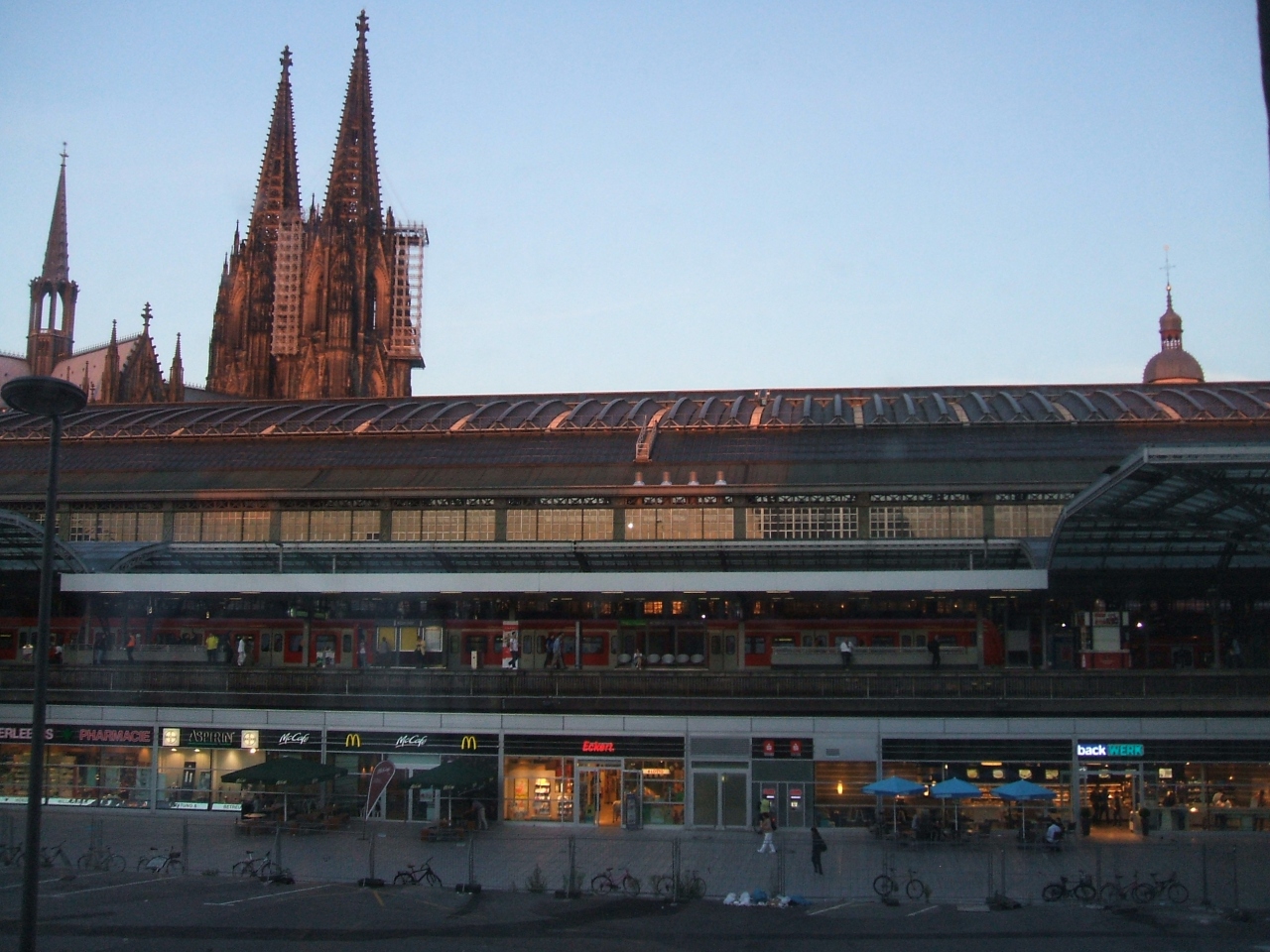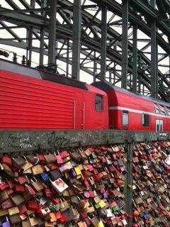 ケルン中央駅からお隣のケルンドイツ駅までの間のライン川にかかっている橋です。間近にドイツ鉄道の列車を眺めながら、のんびりとお散歩をするのによい場所です。橋にはカップル達の鍵がたくさんかかっています。ただし、ケルン中央駅からあるいた場合、お隣のケルンドイツ駅にはこれといったものもなく、カフェも駅構内にマックがある程度です。行きはよかったのですが、帰りは列車に乗り中央駅に戻ってきました。