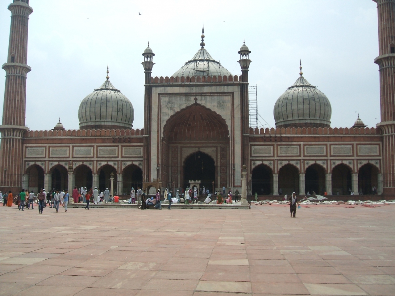 地下鉄で行きました。地下鉄イエローラインCHAWRI BAZARを出ると、そこはもう人であふれかえっています。初詣状態です。サイクルリクシャーに乗れば、人が多いので進みはゆっくりですが、乗り物に乗っている分だけ、おしつぶされ感は減るでしょう。徒歩でも10分ほどで到着します。わからなければ、近くのひとに聞けば気持ちよく教えてくれます。女性は肌を隠すケープを入口で渡されますので、着用して入ります(返却時にお気持ち(1-2ルピー程度でOK)を渡す必要があります)中は土足厳禁で、焼けた石で歩くのが大変でした。ただ、建物は非常に美しく、心を惹かれます。すぐそこに有名なカリームホテル(カレー屋さん)がありますので、ついでに寄ると良いと思います。私はこのジャマーマスジットの建物はもちろんのこと、街の雰囲気もふくめて楽しめました。