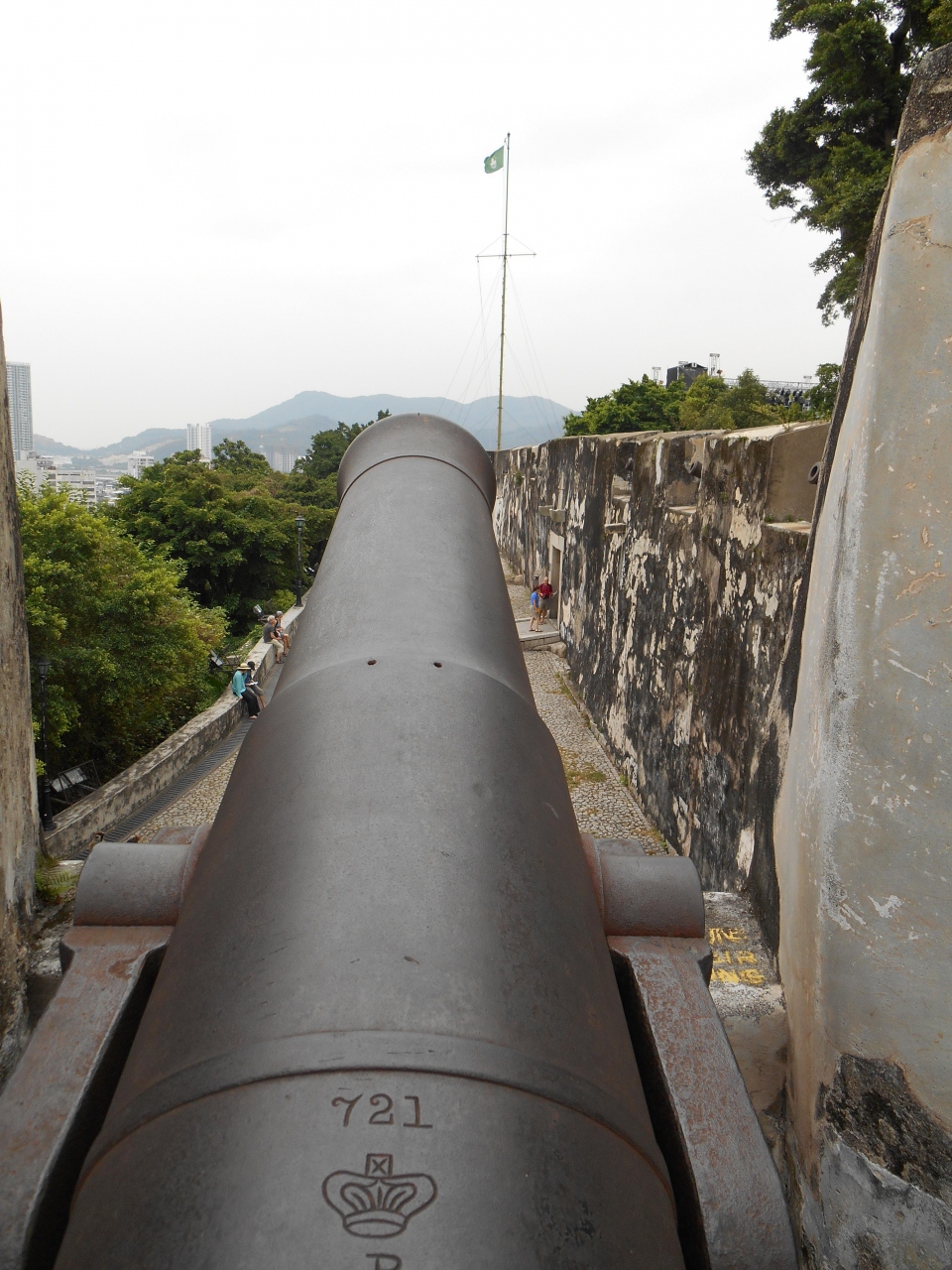 聖ポール天主堂跡横の公園を上がっていったところにあります。ちょっと坂道と階段を上ると、大砲が現れます。ここからマカオを守っていたんだなあ、と思いを馳せながら砦に腰かけて街を見る、ちょっと贅沢な時間です。風もここちよくて最高でした。聖ポール天主堂跡から徒歩5分程度ですが、人混みはそれほどでもなく(聖ポール天主堂跡が混みすぎている感がありますが)ゆったり見られます。無料というのがとにかく嬉しい!