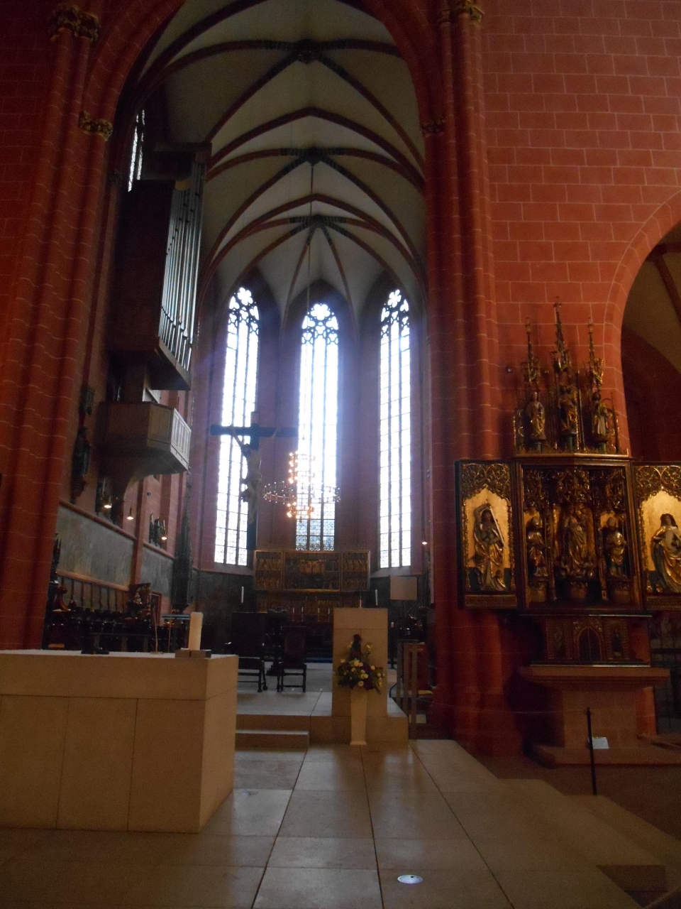 中は大変美しい大聖堂です。ドイツでたくさんの聖堂を見ましたが一番美しいと思いました。青い天井画は圧巻です。街も穏やかで混み合っていないせいか、大聖堂も落ち着いてゆっくり見ることができます。入場は無料ですが、写真を撮りたい場合は1ユーロを支払ます。私はこの1ユーロをケチってしまったことを悔やんでいます。個人的にはケルンの大聖堂よりも美しいと思います。