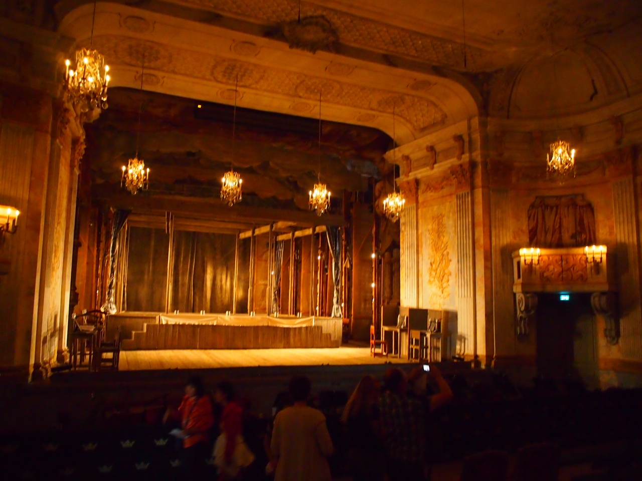 場所はドロットニングホルム宮殿の門を左手にみてもうちょっと坂を登り、右手正面に見える建物が劇場です。