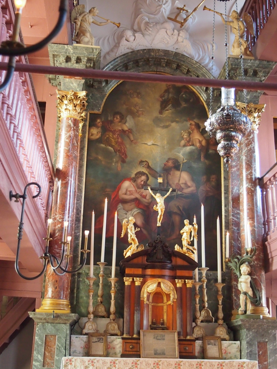 「キリストの昇架」(キリストが十字架につけられ、その十字架を立てるシーン)と「キリストの降架」(キリストが十字架上で息絶え、その十字架から身体をとりおろすシーン)が祭壇の左右に掲げられています。