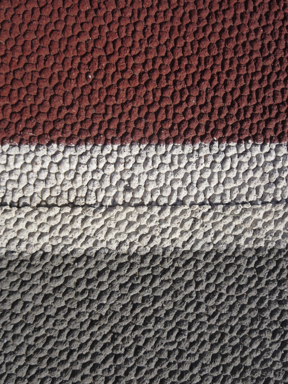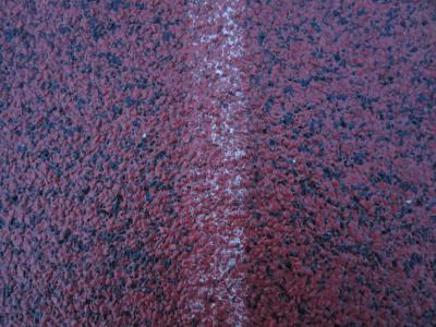 ■路面のかたさ:指でおして指の厚み分くらいへこみ、地面からはね返ってくる感のない柔らかさ。走ってみると、舗装が浮いてはいないのに舗装内部に空気の層が入った浮いた感じがします。