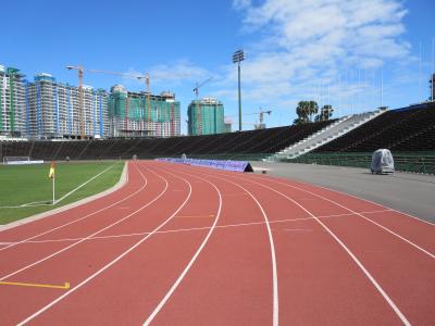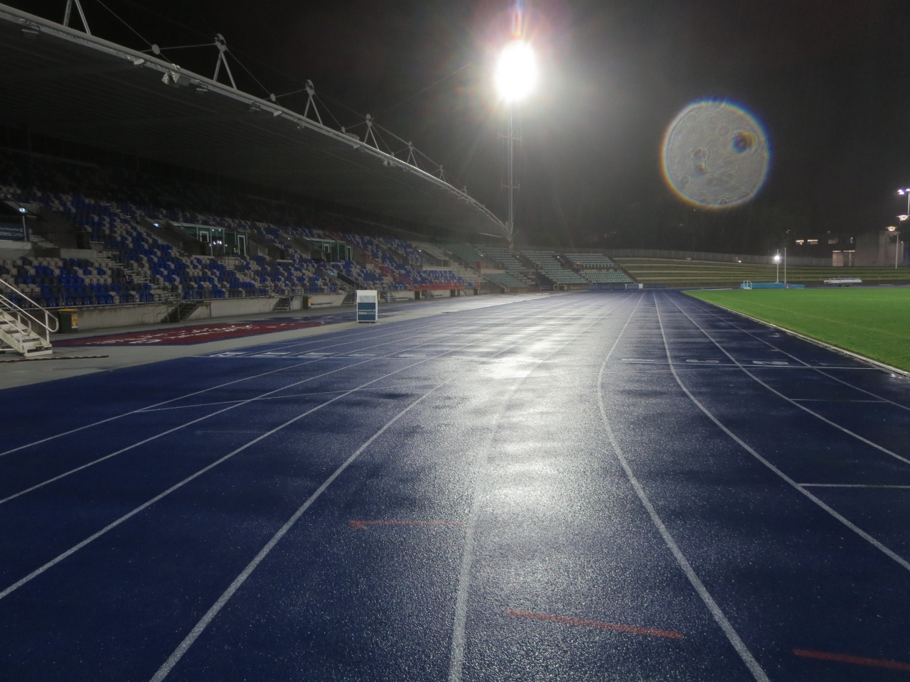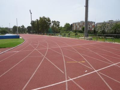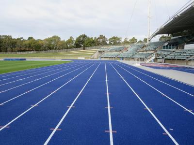 ■トラックの形状:固定されたチップ状ウレタン舗装、400m全8レーン