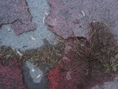 ■路面のかたさ:ラバー面は薄いがスパイクの歯が刺さらないような違和感はなし(一部に路面舗装はげあり)