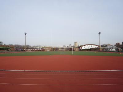 トラック部分は施錠されていますが、イベントがないときは100mスタート地点付近のスタンド下の事務所に行けば使わせてもらえます。