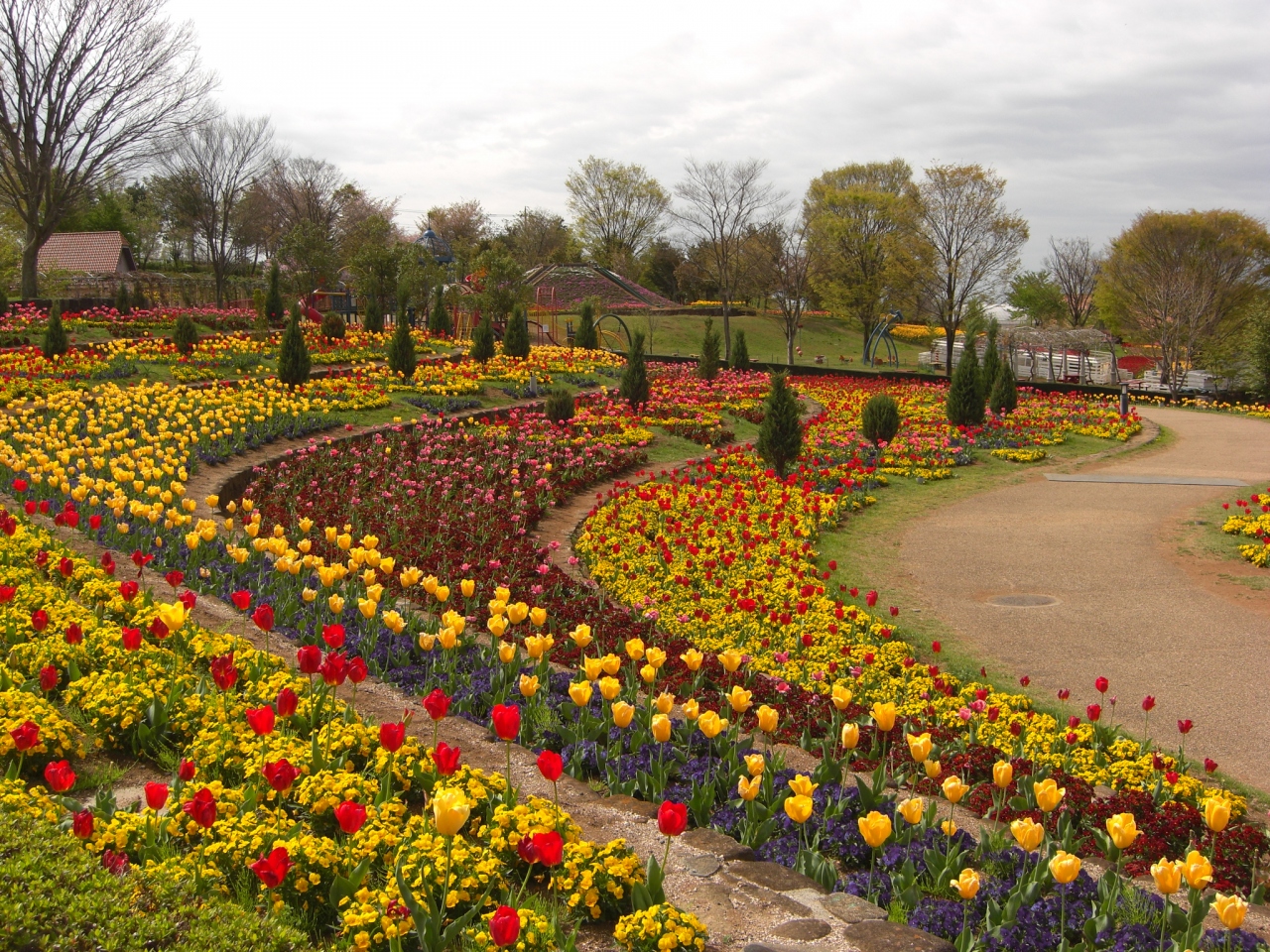 チューリップ祭りの最中だったので園内は色々な種類のチューリップが咲き乱れていました。隅々まで手入れがなされていて花や植物好きの両親はとても喜んでいました。園内にはハイジのグッズが売られていたり、セントバーナードのヨーゼフがいたり小さいお子さんも楽しめると思います。日本一のバラの回廊があったのでバラの時期はもっときれいなのではないでしょうか。- 旅行時期