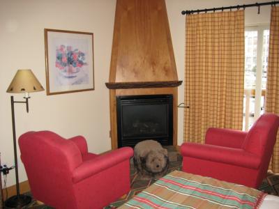 部屋の中に暖炉がある。