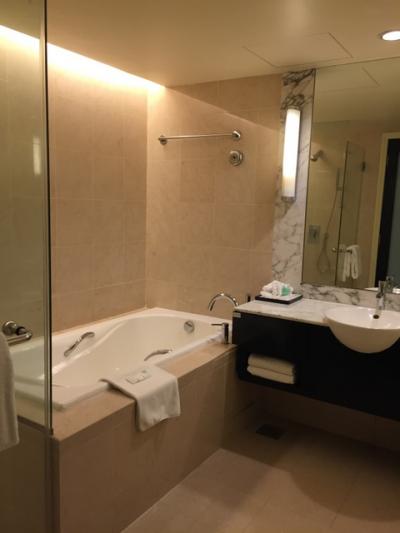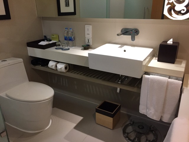 ミニバーだけでなく、バスルームにもペットボトルの水があり、歯磨きも水道水は避けよってこと?とちょっと考えた。