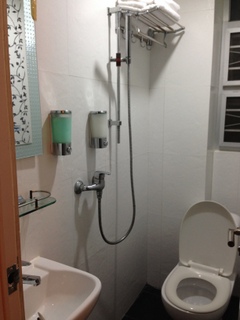 バスルームは、シャワーとトイレがすごく近い、というよりは、シャワーブースにトイレがあると開き直ればむしろ広い(笑)。洋式だから別に問題なし。