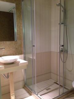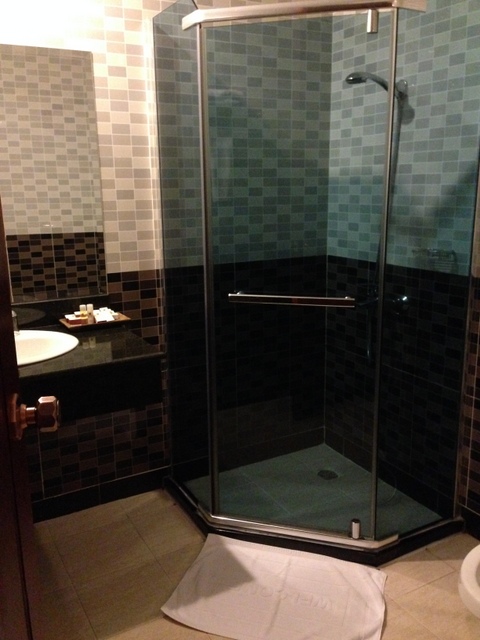 バスルームも広く、シャワーブース(バスタブはない)もどこにもぶつからずのびのび体が洗える。ドライヤーあり。