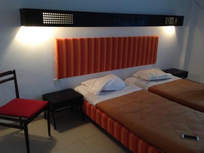 入口は妙にゴージャスだけど、客室はシンプルで、冷蔵庫がなかった。