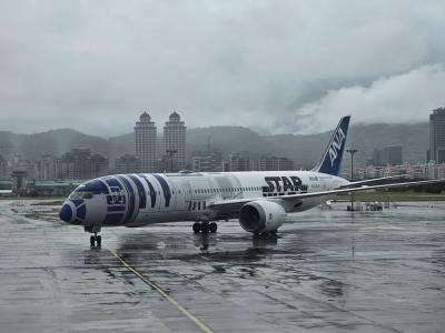 搭乗ゲートで待っていると、なんとスター・ウォーズジェット!皆さん写真を...