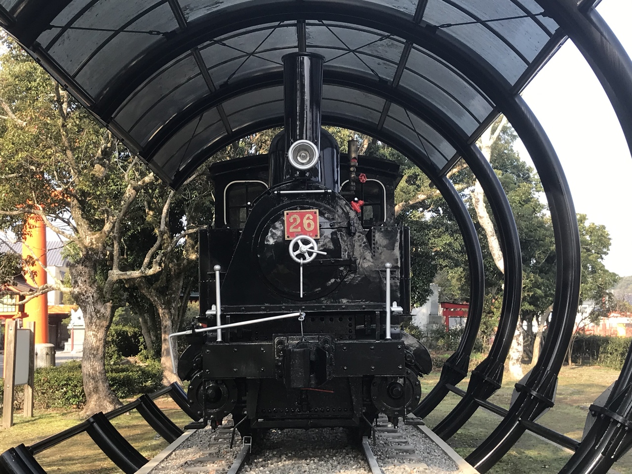 参道を進んで左側に蒸気機関車があり