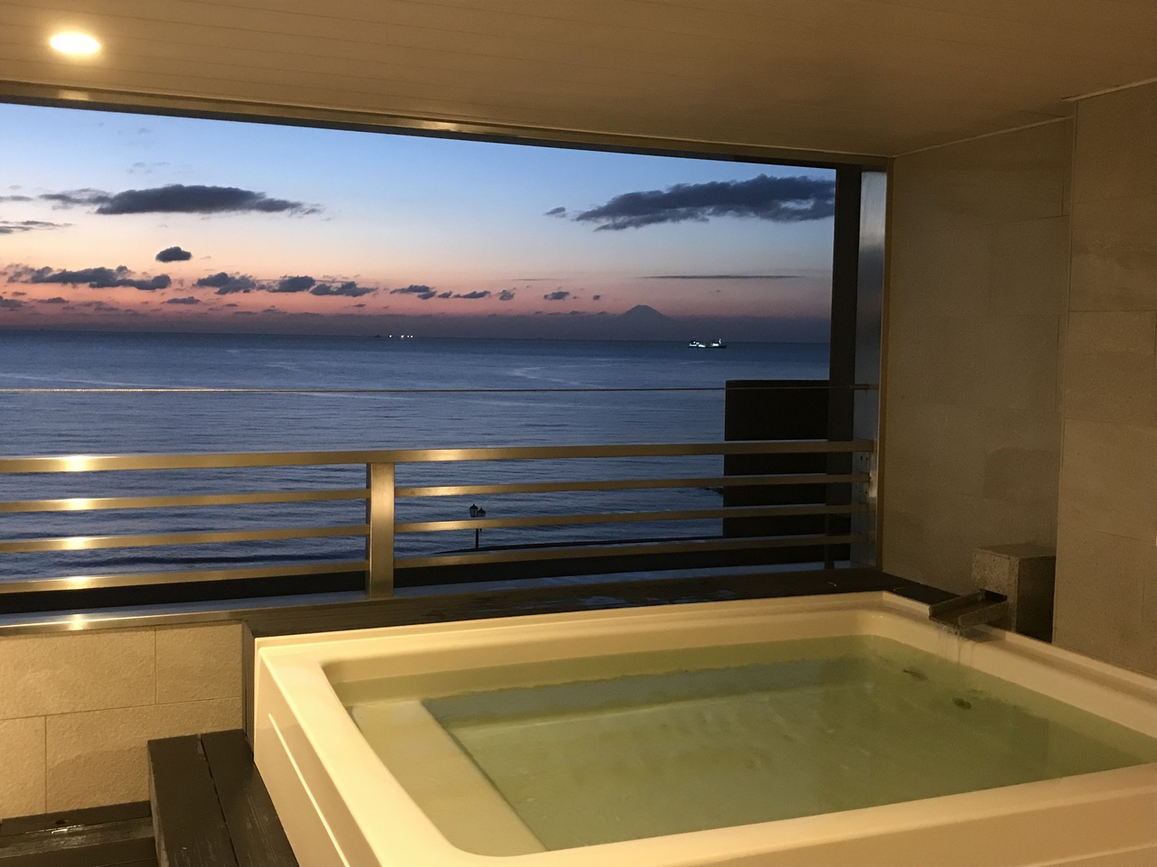 ロビーや貸切風呂からの夕景は凄く良かった。