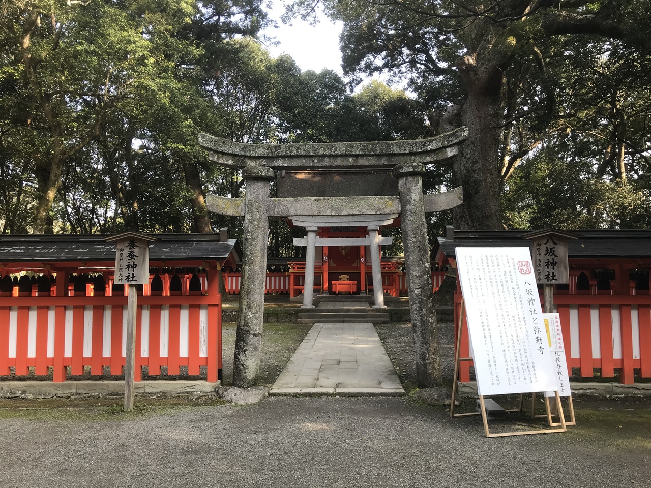 弥勒寺金堂の御本尊は延命長寿・病気平癒をもたらす薬師如来で、八坂神社は守護神として寺院の脇にお祀りされていたとのことです。- 旅行時期