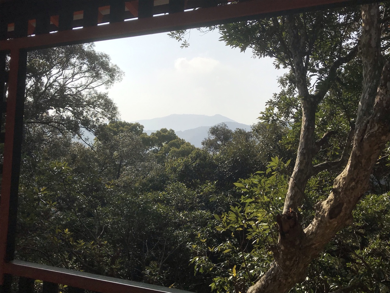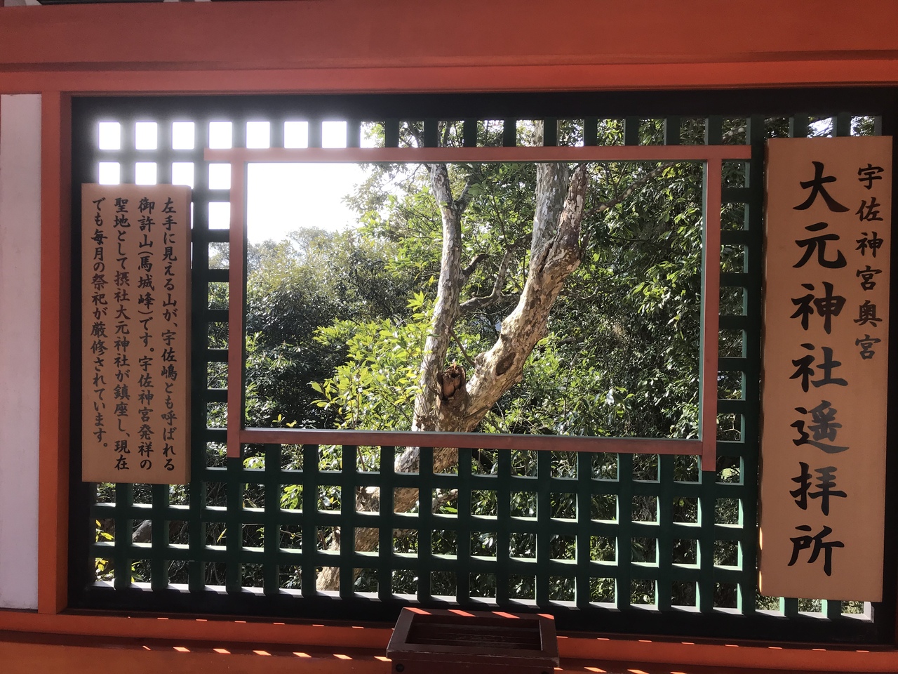 宇佐神宮上宮の参拝に後に塀に開いた窓から、大元神社を参拝しました。