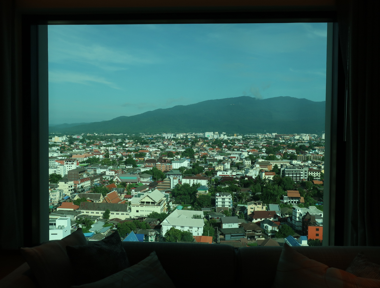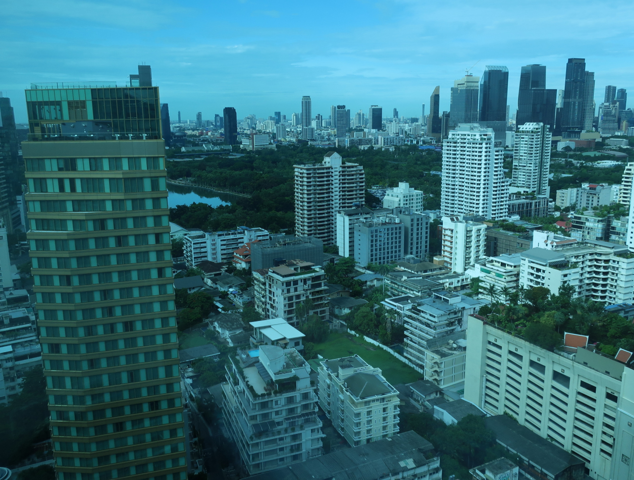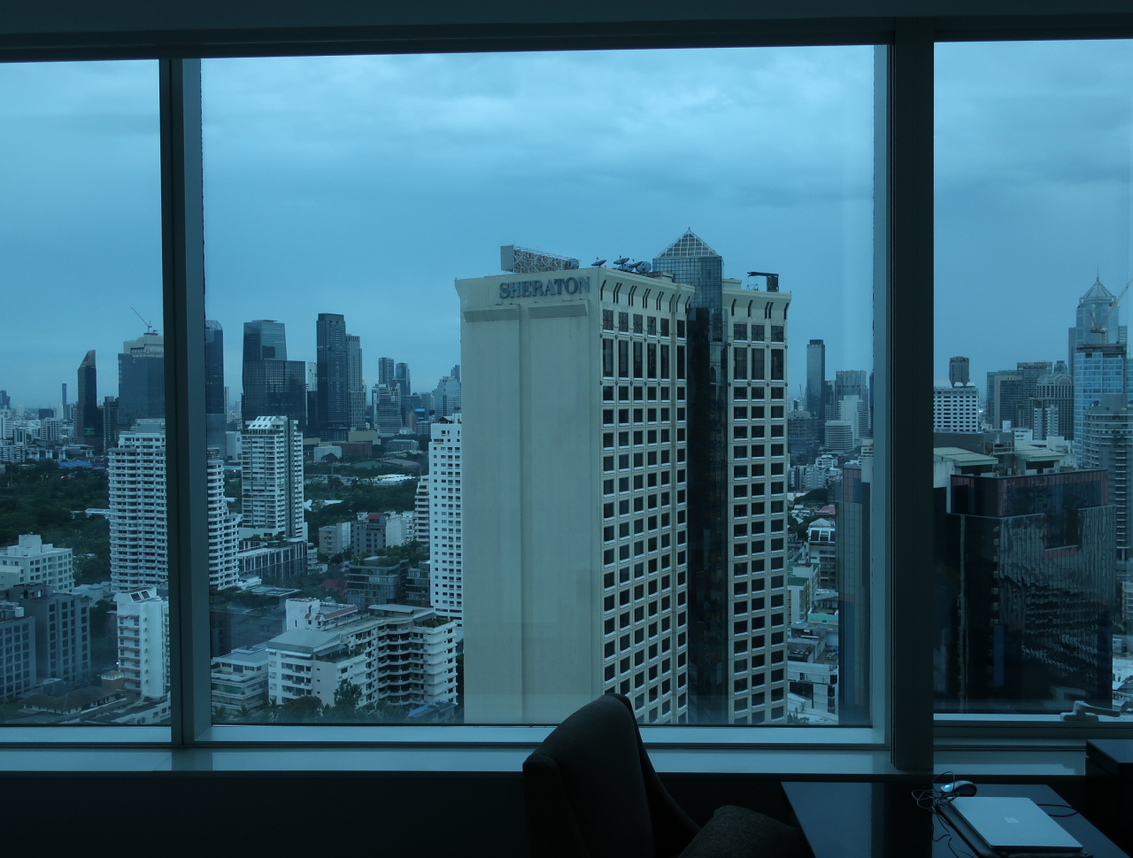 ホテルは高層階で広めの部屋にしました。眺望は抜群で,バンコクの高層ビル群が一望に出来,眼下には高架上を走るBTSの車体も良く見えました。
