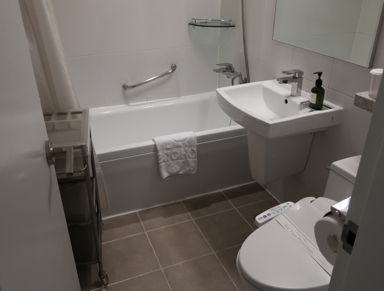 MRTの中山駅に隣接する複合ビルの7階に入っているホテルなんですが,古さは感じられるものの最高のロケーションを有する上に,値段の割に広い部屋でゆっくり目のバスタブも付いています。