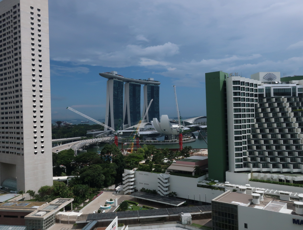 ベイエリアを眺めるべく「パンパシフィック・ホテル」のベイビュールームにしたんですが,15階の部屋だったので前方の「マンダリン・ホテル」に遮られてマリーナ湾の全景を見渡すことが出来なかったものの,ベイサンズが良く見える部屋になってました。