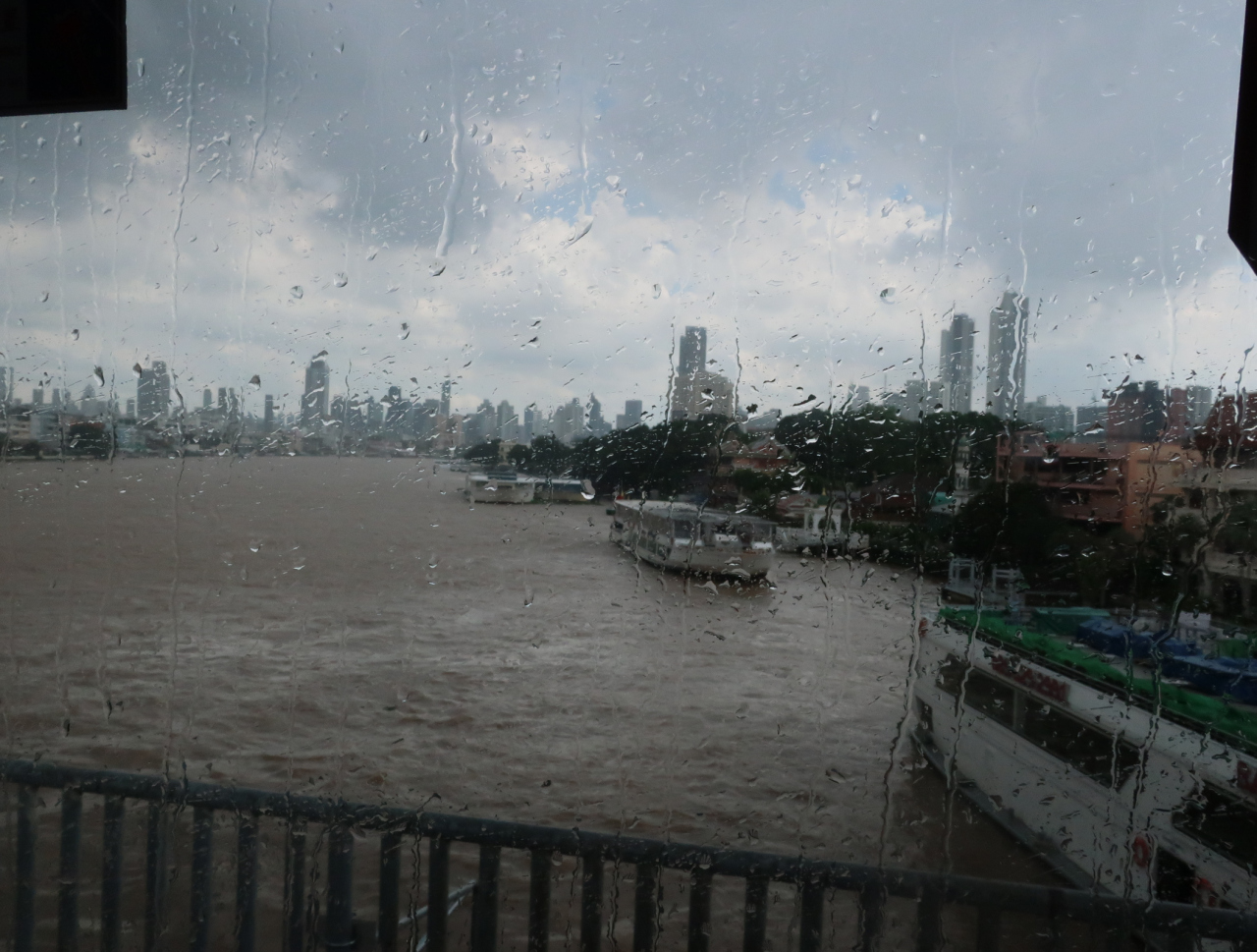 #4バスはシーロム地区から中華街の裏道を通ってチャオプラヤー川を渡り,「ワット・パクナム」まで徒歩5分の終点まで約50分の旅。車窓からの眺めをたっぷりと楽しむことが出来ました。