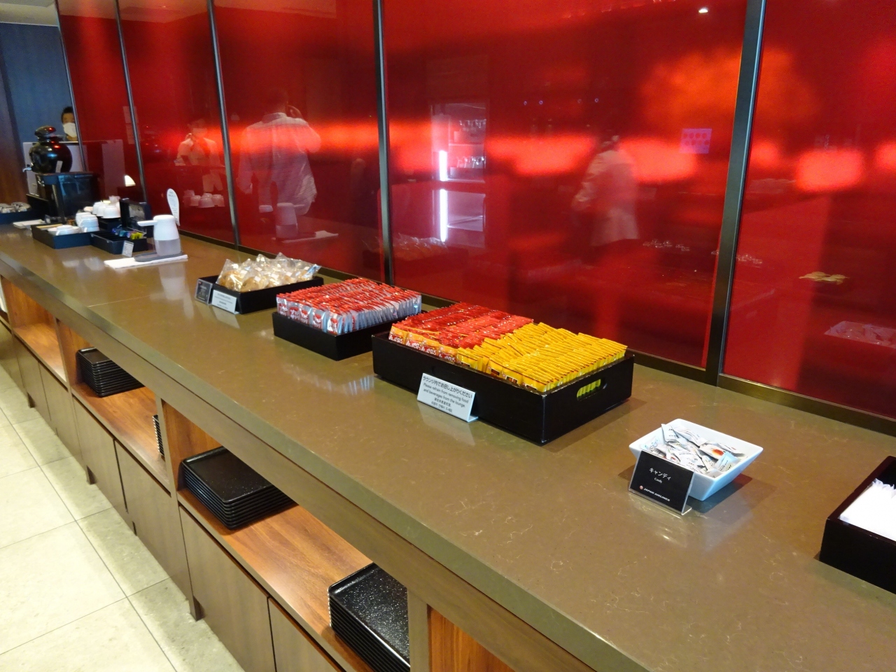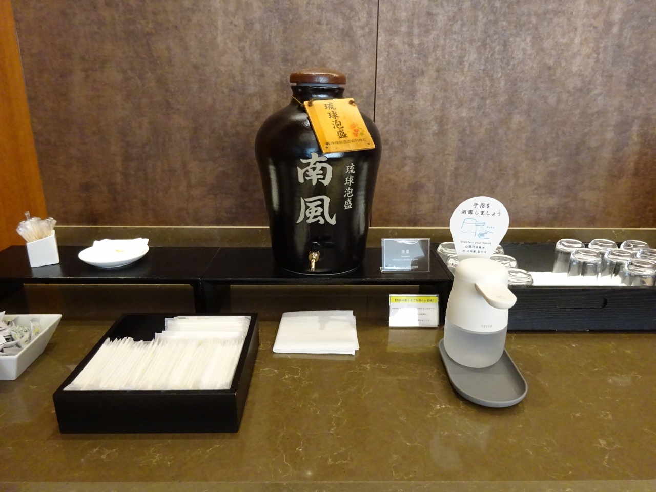 田のDPラウンジも食べ物や飲み物が簡素化されていましたが,那覇のラウンジも簡素化がなされていて残念でした。…泡盛「南風」の瓶は残っていたものの,美味しいパンや高級ウィスキーが無くなっていました。