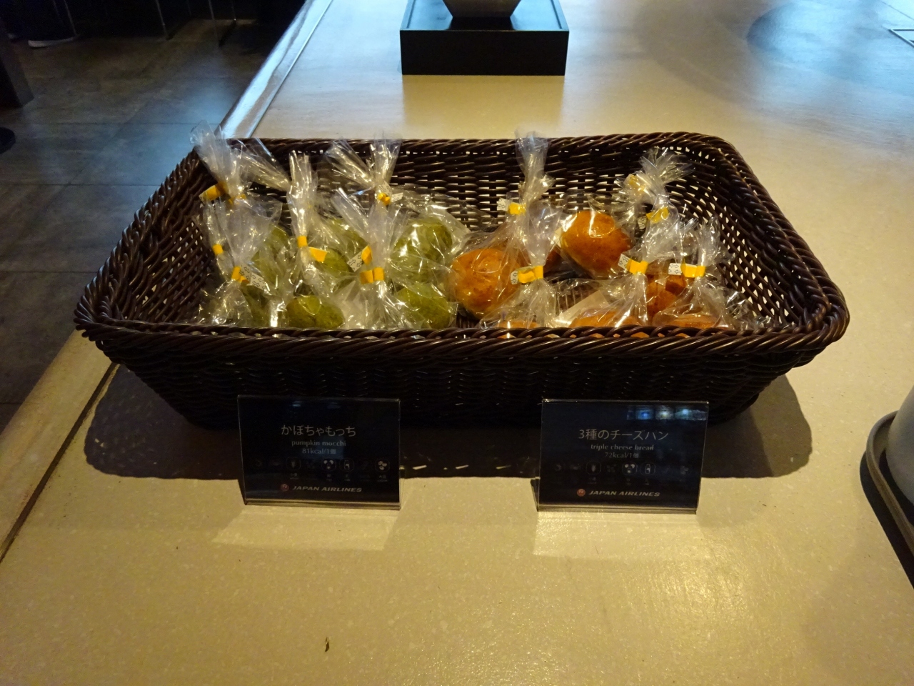 オリジナルのおにぎり2種,パン2種といずれも大変美味しそうでした。…この後F席搭乗予定だったので実際には食べなかったのですが,田や那覇に比べて確実に美味しいと思われます。