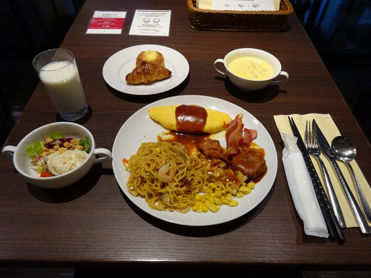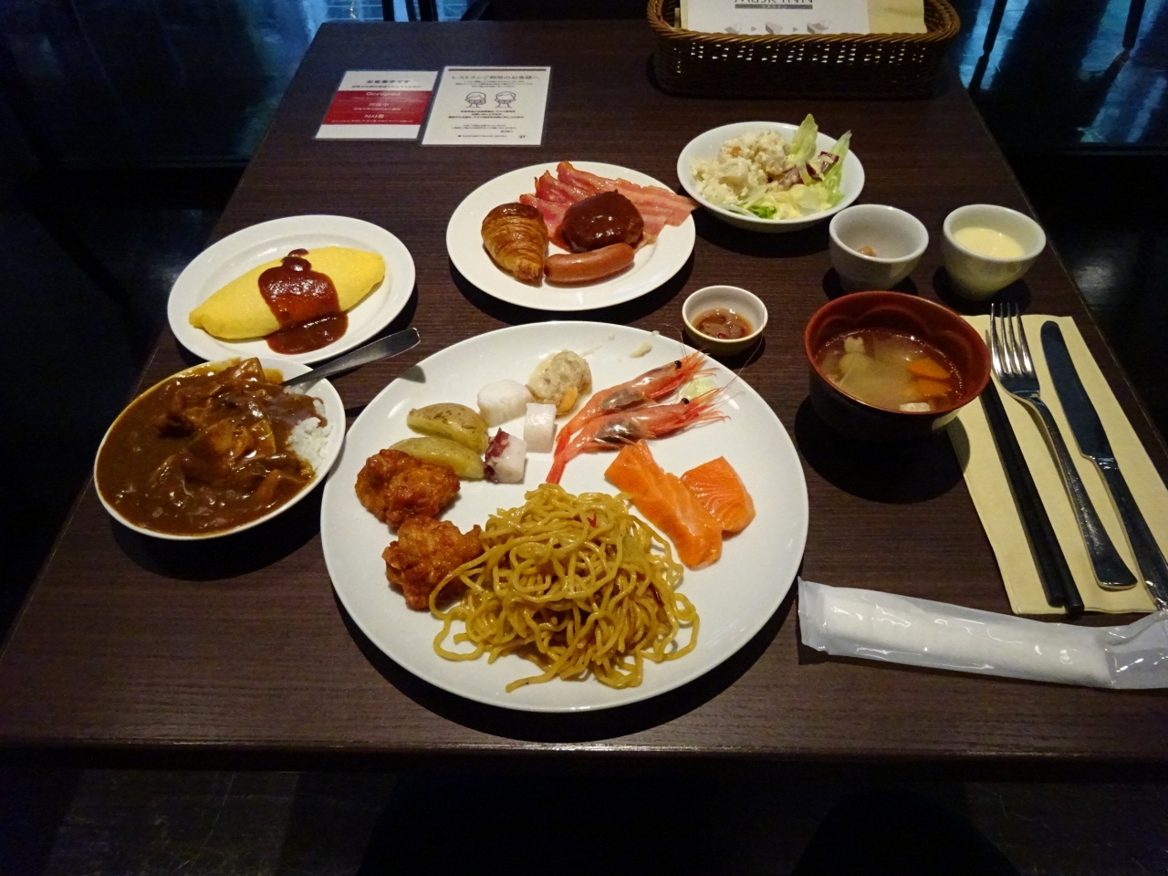 2日目は海鮮をパスして,洋食系の食材を少しずつとったつもりだったのですが,これまた大きな皿一杯になってしまいました。