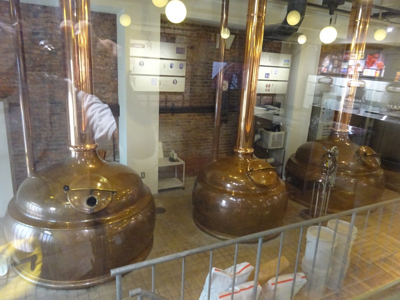 写真やパネルと,当時の仕込み釜や濾過器などが無料で見学できます。