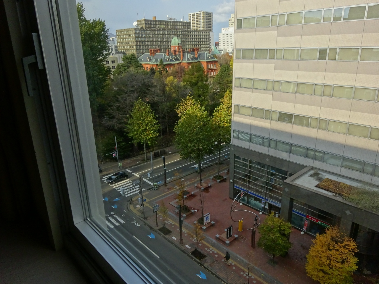 2度目の利用となり前回は部屋のアップグレードをして貰ったものの,今回は普通のツインルームだったのですが,朝起きて部屋のカーテンを開けてみると窓から旧北海道庁舎が見える部屋でした。