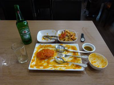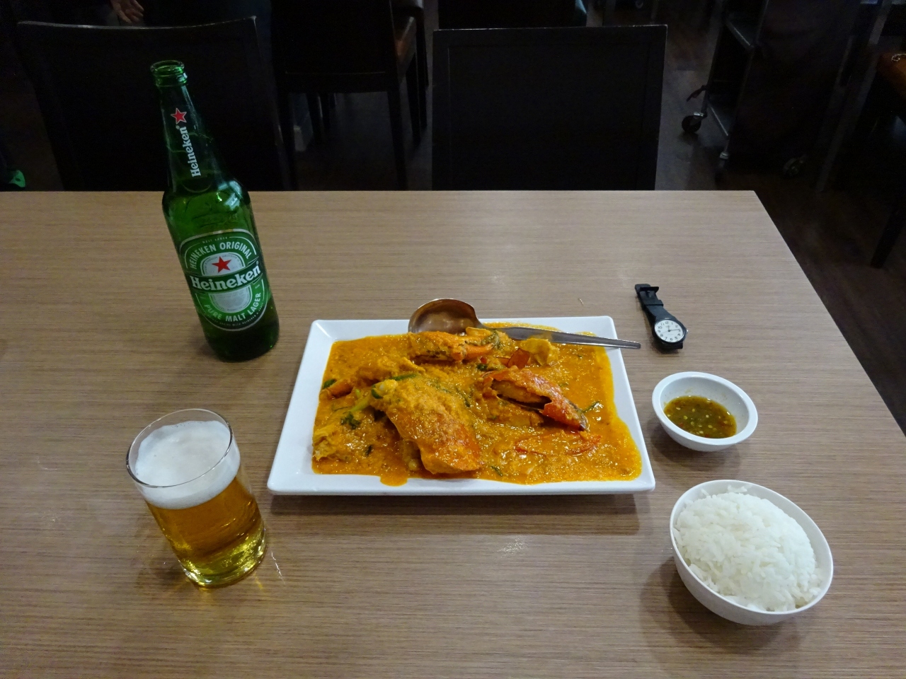 バドワイザーをお供に,殻付きのカニカレーと悪戦苦闘をしながらも50分かけて美味しく戴きました。