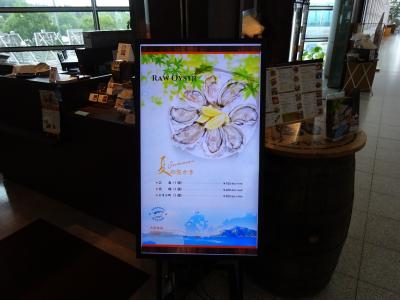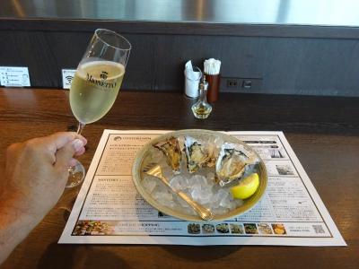 日帰りの広島旅,空港ステイで「お好み焼き」を食べることを目的にしていたのですが,6月に「生牡蠣」が食べられると言うことだったので,OYSTER FARM でスパークリングワインとともに生牡蠣を戴いてきました。… 至福のひとときでした。