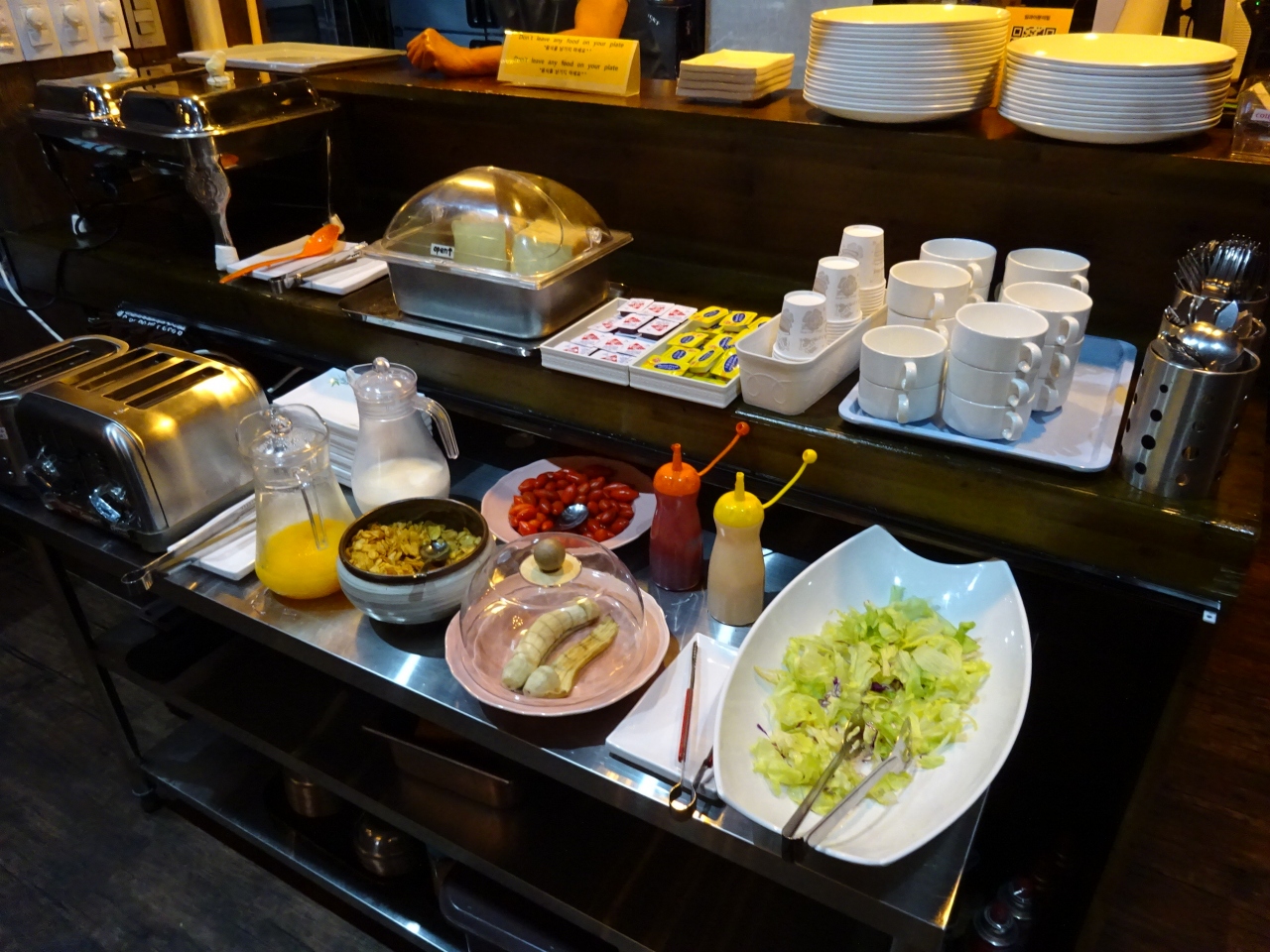 無料の朝食が付いているのですが,完全にオマケ的な内容なので,余裕があれば外に食べに行っても良いかも知れません。