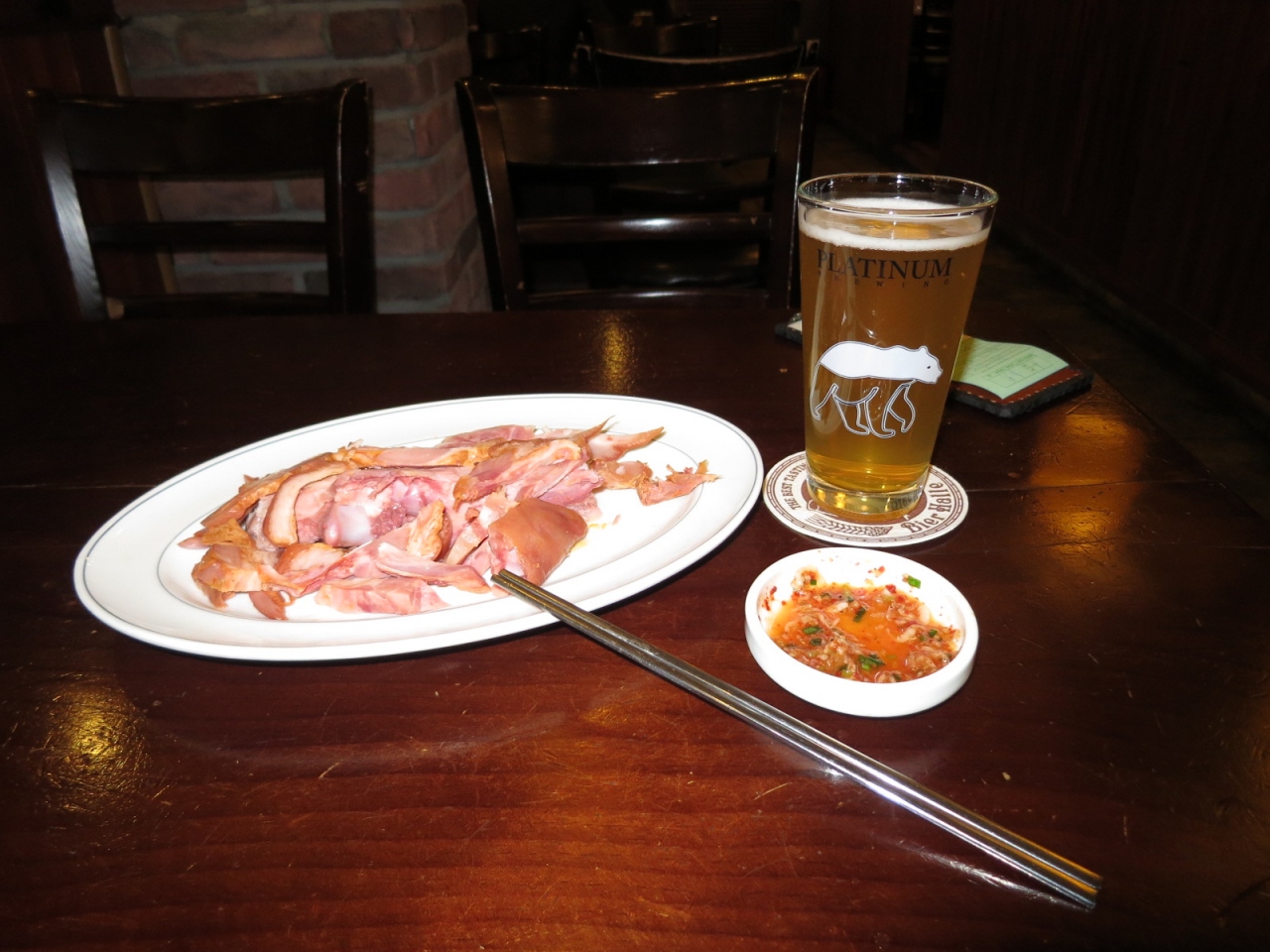 店はかなり大きいですが,地元の人で一杯でした。生ビールのつまみに豚足を頼んだのですが,一皿が大盛りだったので,食べても食べても無くなりませんでした。