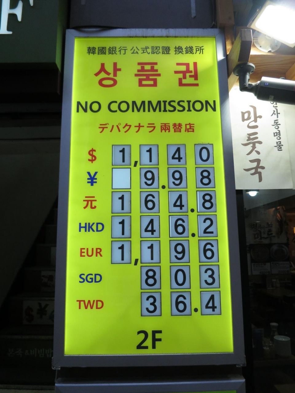 ソウルの両替では,トップクラスだと思います。レートは日時によっても変わりますが,周辺の両替所に比べると安定して良いレートを示しています。