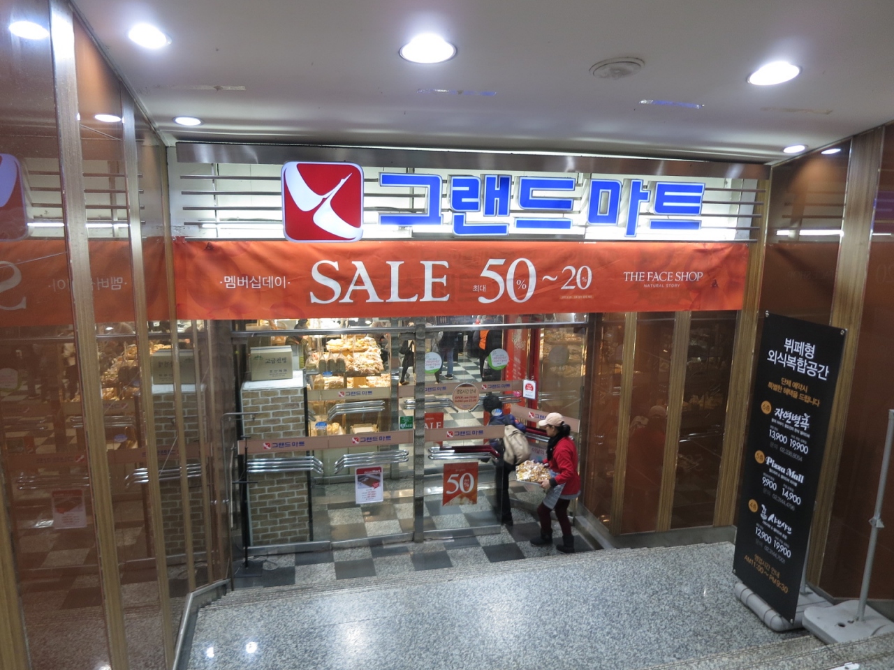 地下鉄「新村」の出口に見つけたグランマート。毎回利用していますが,韓国のりやコチュッジャン等のお土産が安いと思います。