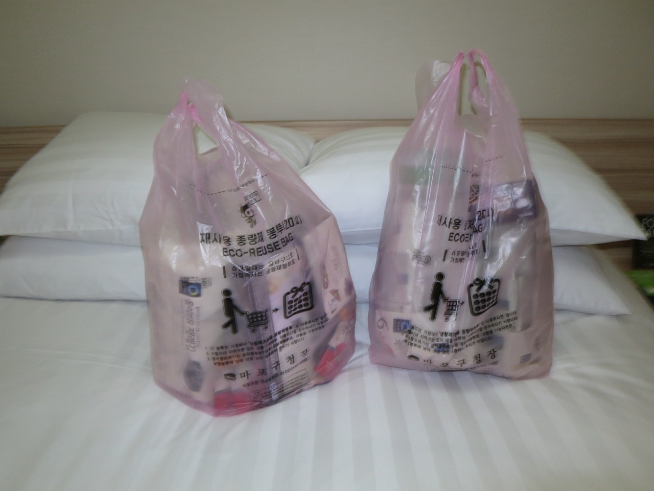 ピンクのポリ袋は有料(W500)なので,買い物袋は持参して下さい。…韓国のりは安いですが,嵩張るので特に要注意です。