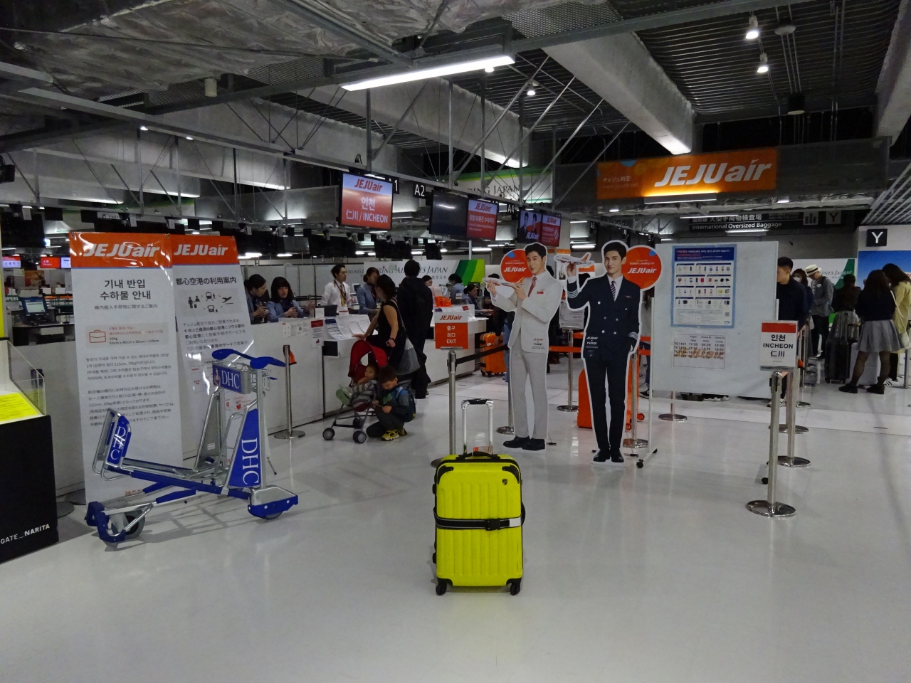 チェジュ航空のカウンターはそれほど混んでなく,5分ほど列んで手続き完了。スーツケースを預けたので,10分程カウンター周辺で待つように言われました。