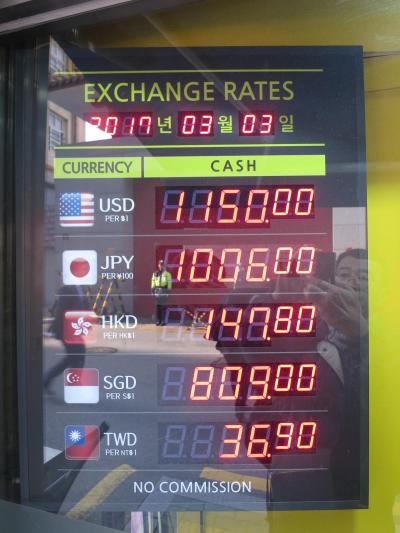 2017年3月の旅行でしたが,1万円が3日の8時では₩998,000,4日の9時では₩100,600,19時では₩100,700でした。- 旅行時期