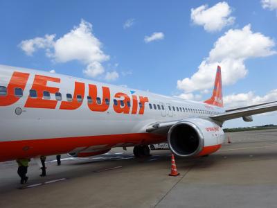 チェジュ航空のカウンターでチェックインして,荷物を預けます。(10分待機)